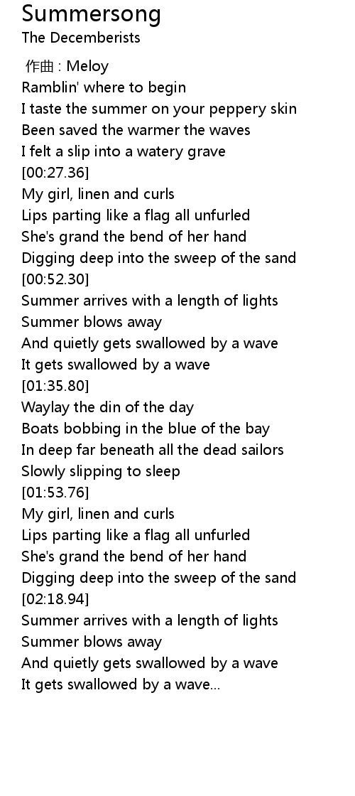| [01:24.37] | And quietly gets swallowed by a wave |