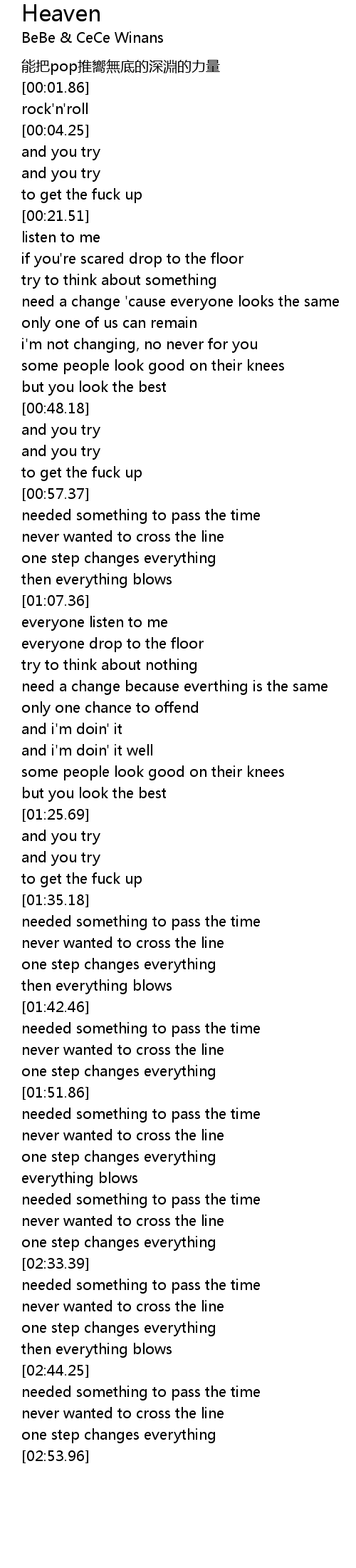 | [00:32.65] | need a change 'cause everyone looks the same |