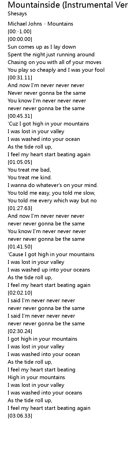 'Cuz I got high in your mountains |
