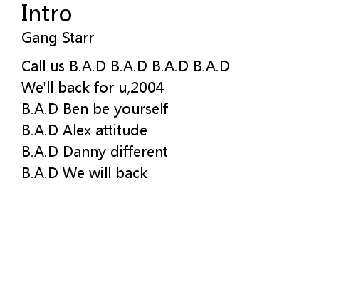 | [00:29.60] | Call us B.A.D B.A.D B.A.D B.A.D |