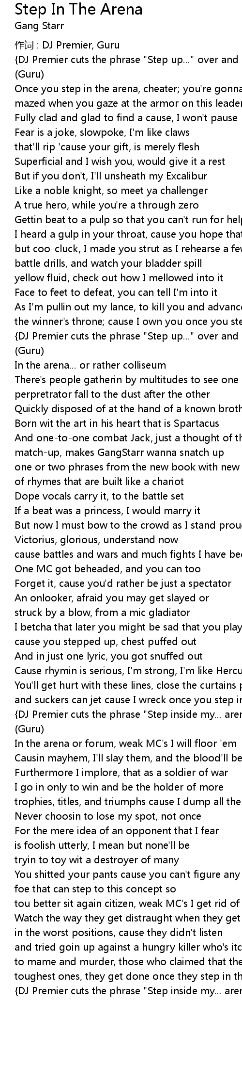| DJ Premier cuts the phrase " Step inside my... arena" over and over | |