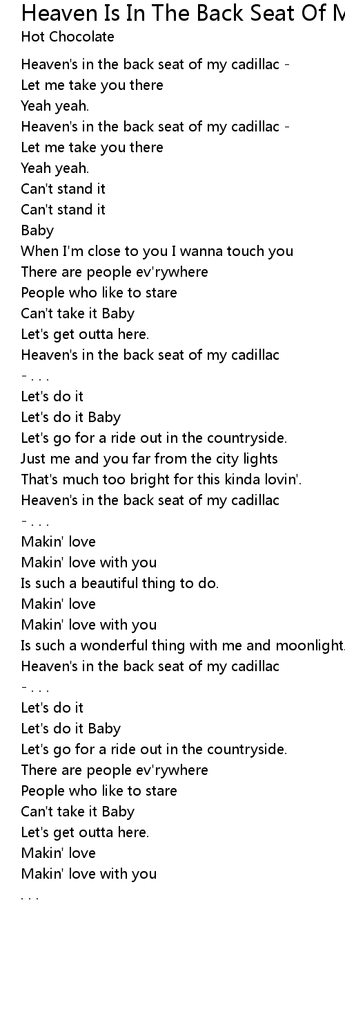 Heaven Is In The Back Seat Of My Cadillac Lyrics