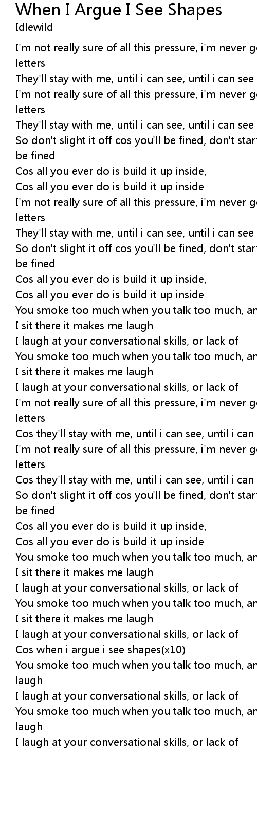 You smoke too much when you talk too much, and when i argue sit back it makes me laugh |