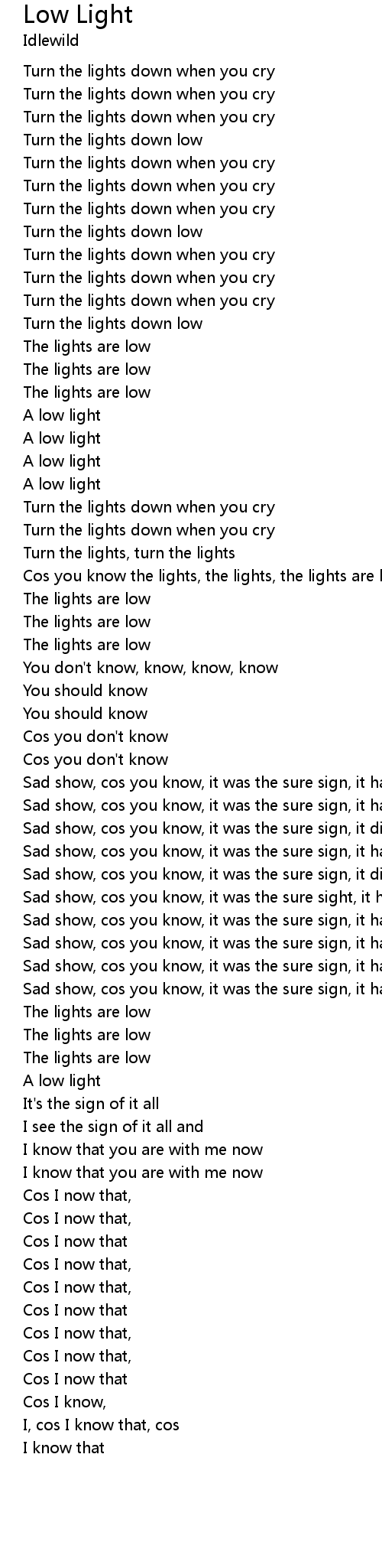 Cos you know the lights, the lights, the lights are low |