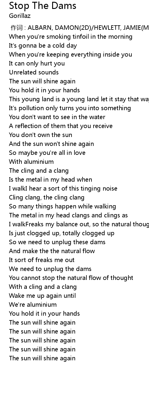 | [00:00.00] | 作词 : ALBARN, DAMON(2D)/HEWLETT, JAMIE(MURDOC NICCALS) |