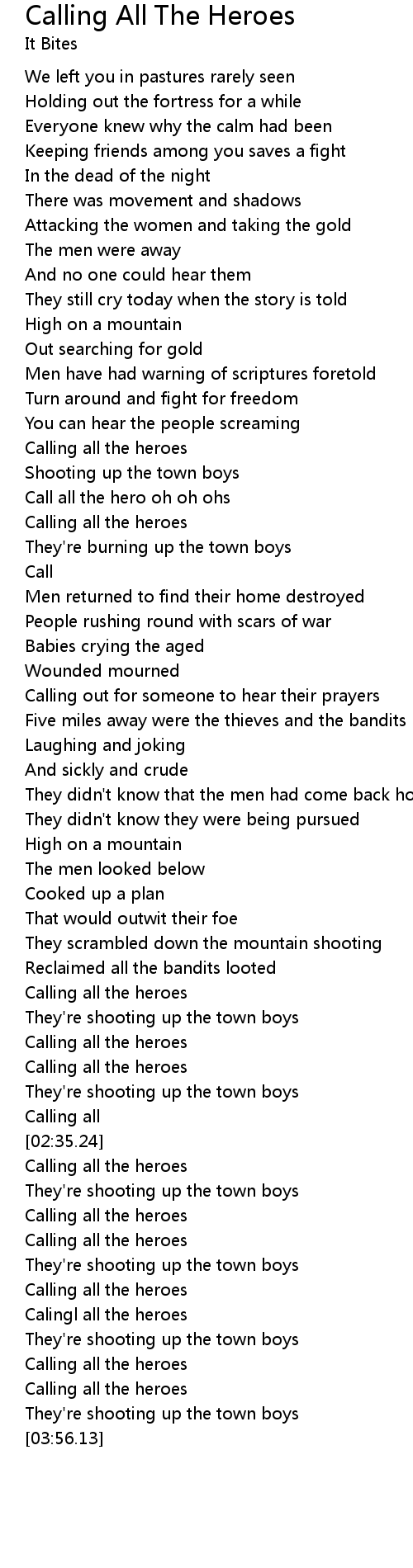 [03:43.41] Calling all the heroes