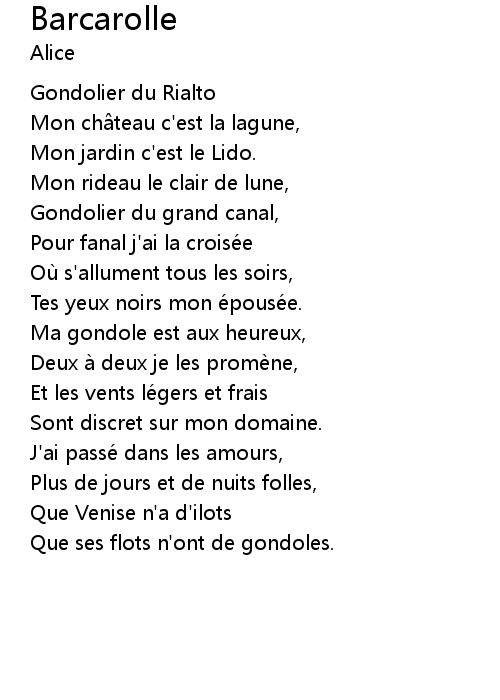 | Ma gondole est aux heureux, | |