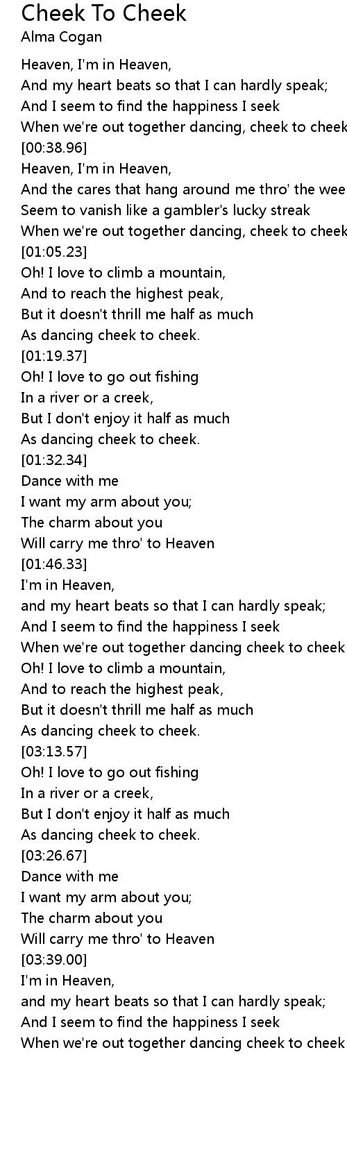 When we're out together dancing, cheek to cheek. |