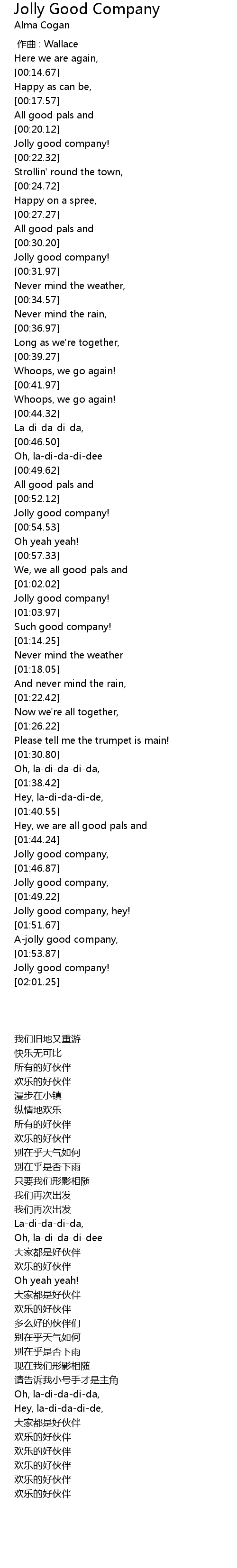 | [01:56.90] | Jolly good company! |