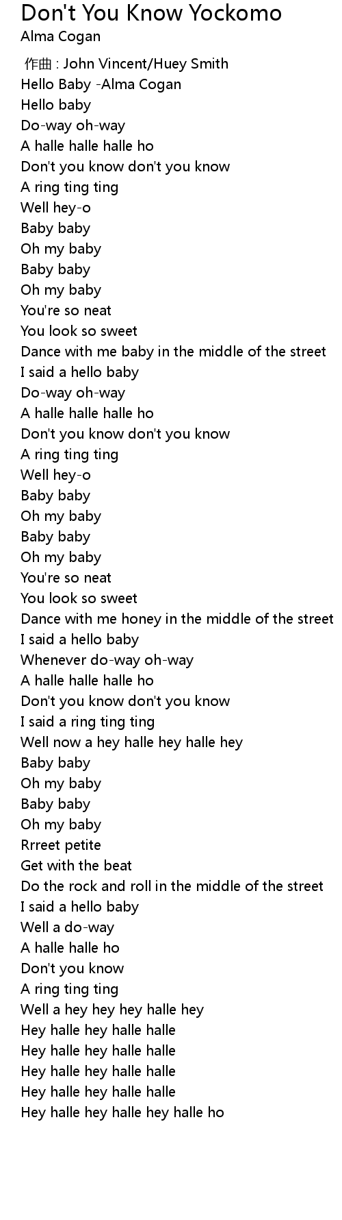 | Song | Don't You Know Yockomo |