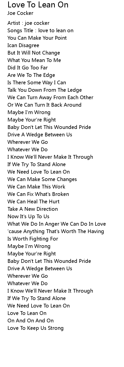 | [02:04.24] | Baby Don't Let This Wounded Pride |
