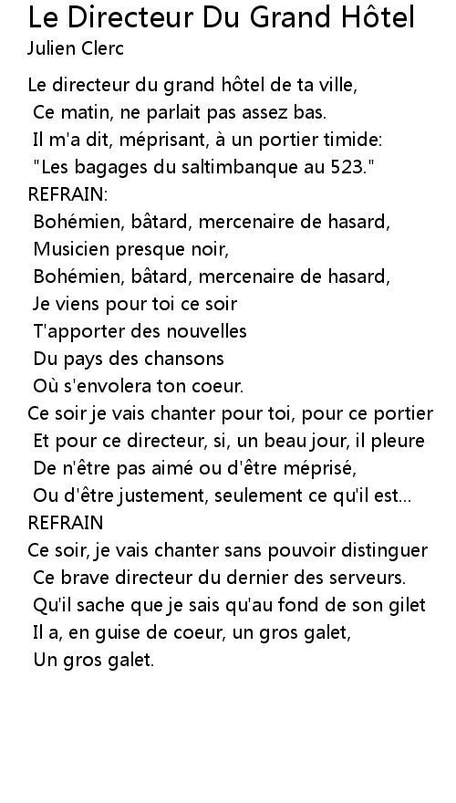 | Ce soir je vais chanter pour toi, pour ce portier | |