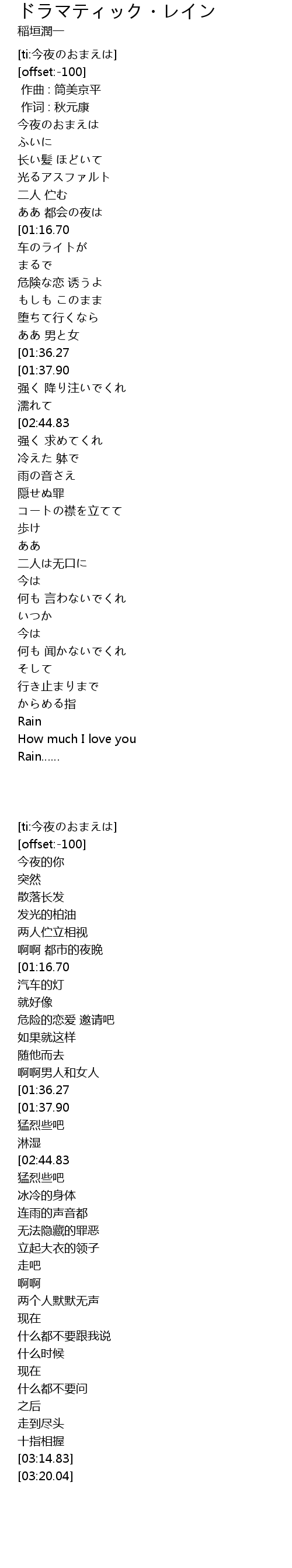 | [01:21.13][01:36.27][02:34.59][02:49.53] | レイン |