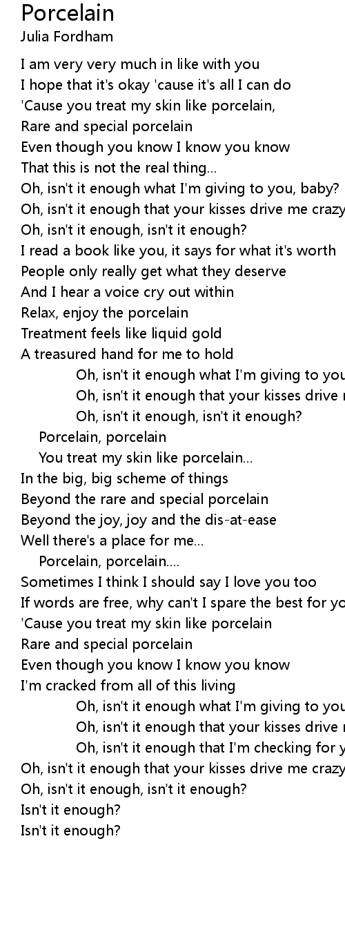 | ' Cause you treat my skin like porcelain | |