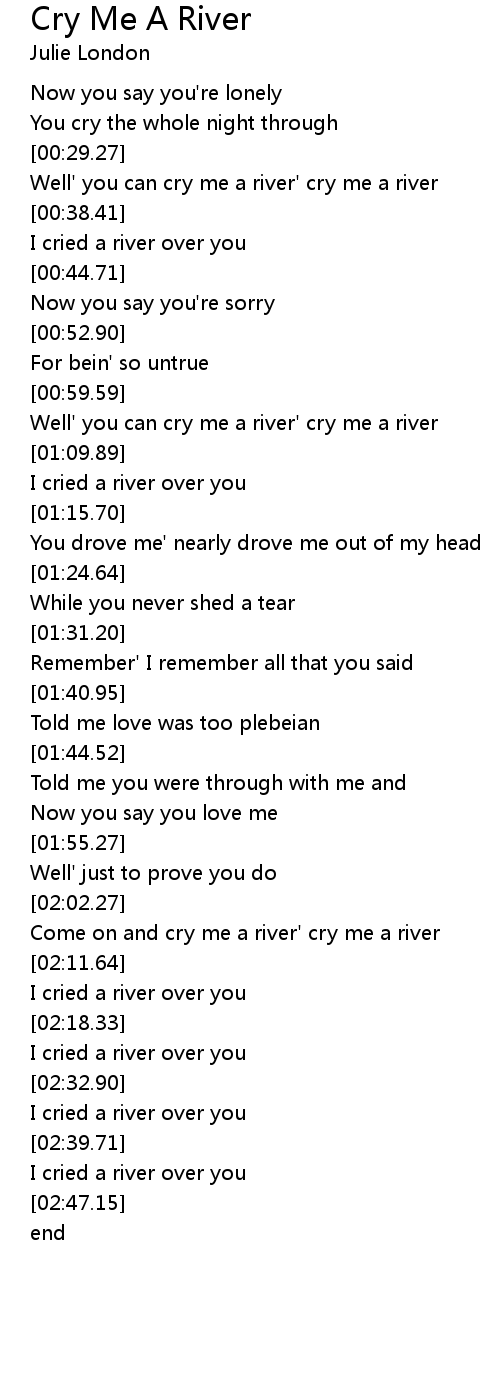 Come on and cry me a river' cry me a river |