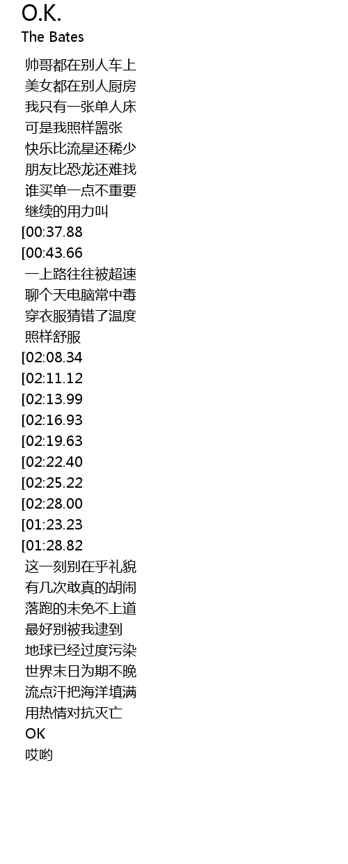 | [02:42.42][02:08.34][01:00.58] | OK 没人能告退 |