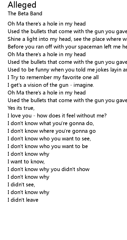 Oh Ma there's a hole in my head |