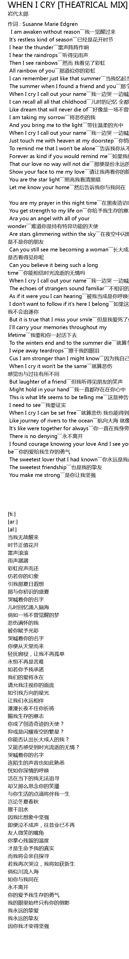 | Song | WHEN I CRY [THEATRICAL MIX] |