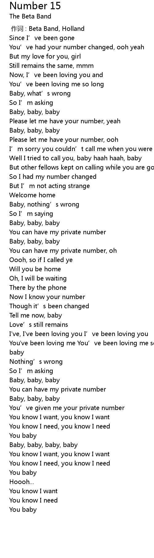 | [00:14.94] | You’ve had your number changed, ooh yeah |