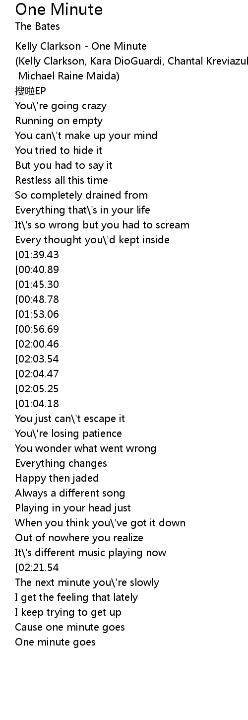 | [00:00.55] | Kelly Clarkson - One Minute |