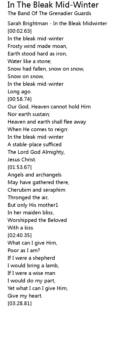 [00:01.22] Sarah Brightman - In the Bleak Midwinter