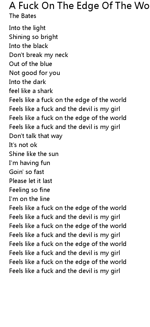Feels like a fuck on the edge of the world |