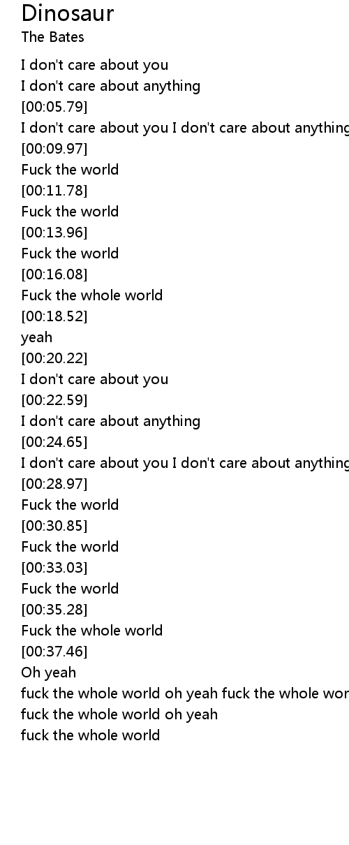 | [00:38.80] | fuck the whole world oh yeah fuck the whole world oh yeah |