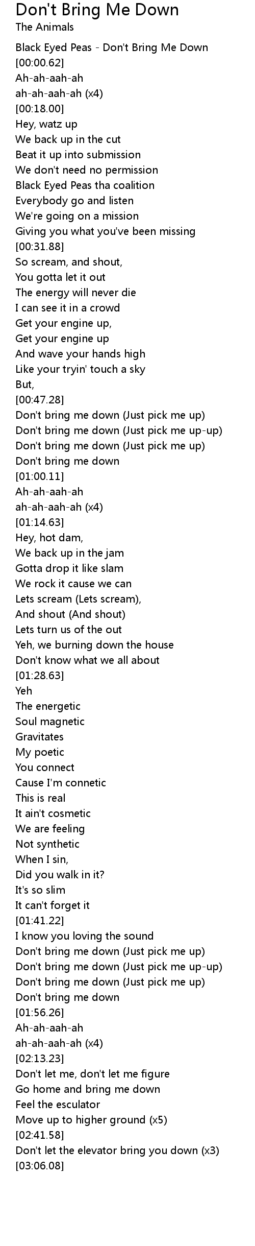[00:-7.52] Black Eyed Peas - Don't Bring Me Down