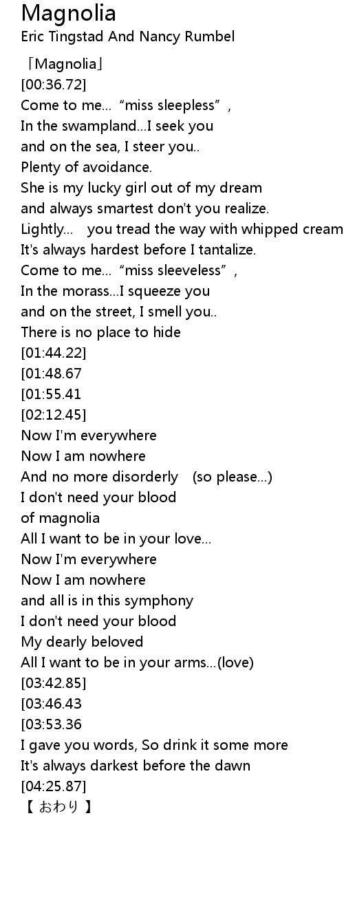 | [03:04.51] | of magnolia |