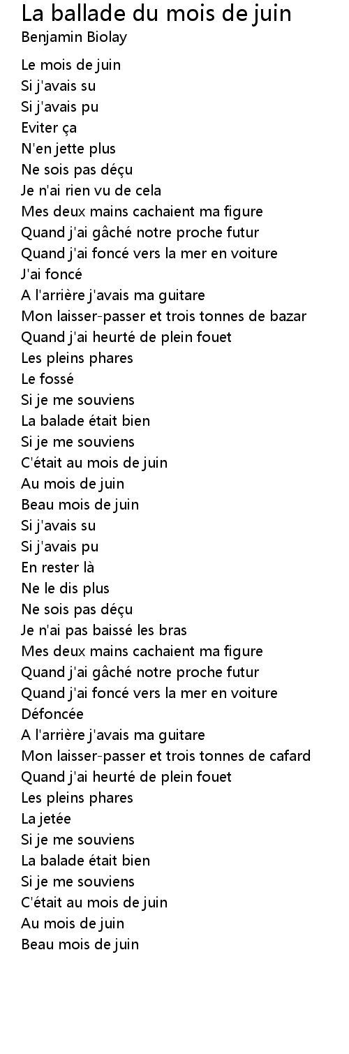 | Song | La ballade du mois de juin |