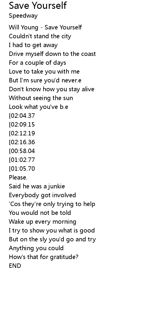 | [02:27.78][01:05.70] | Save yourself, just yourself |