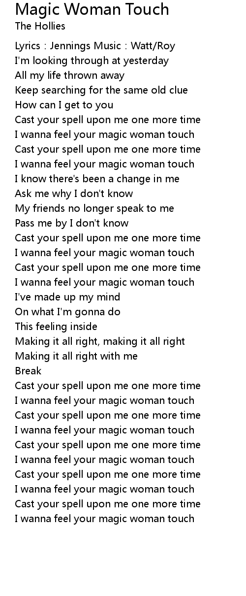 | I wanna feel your magic woman touch | |