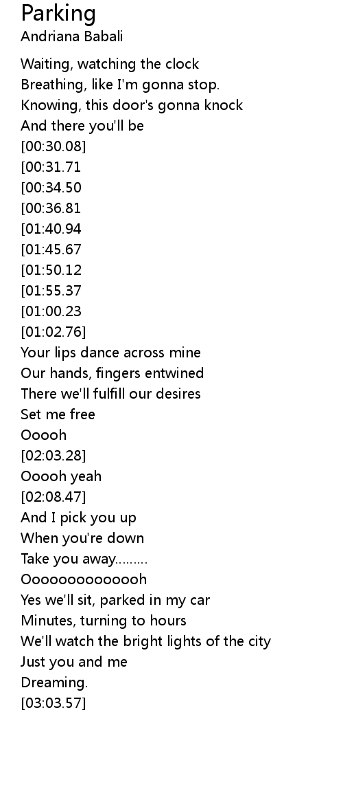 | [02:41.21] | Yes we'll sit, parked in my car |