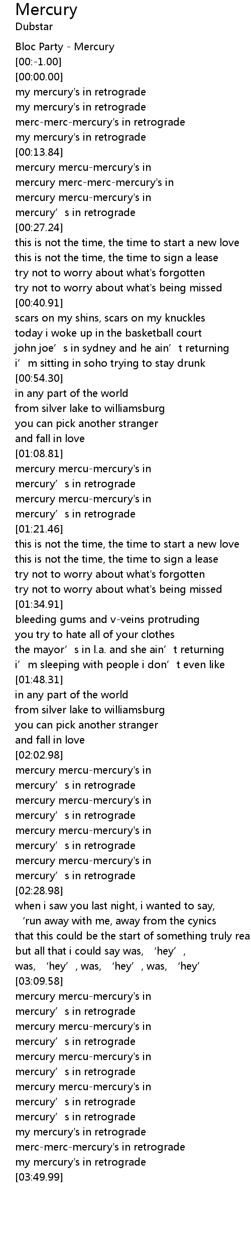 | [03:43.32] | mercmercmercury' s in retrograde |