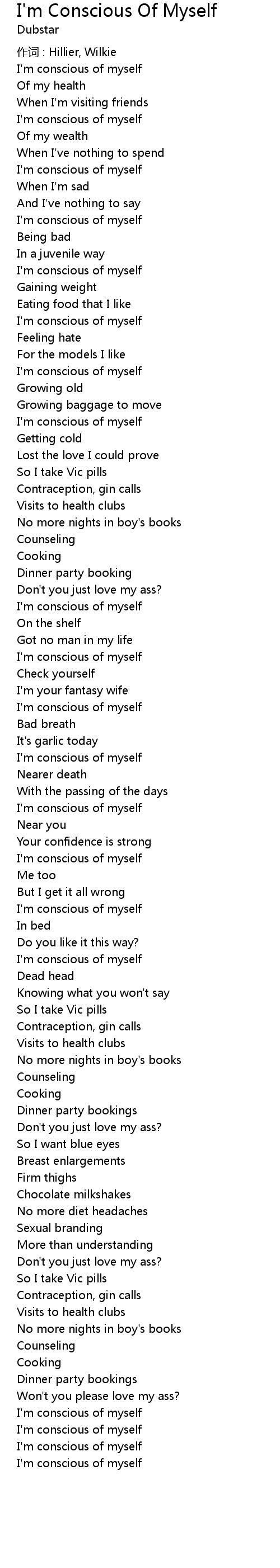 | I' m conscious of myself | |