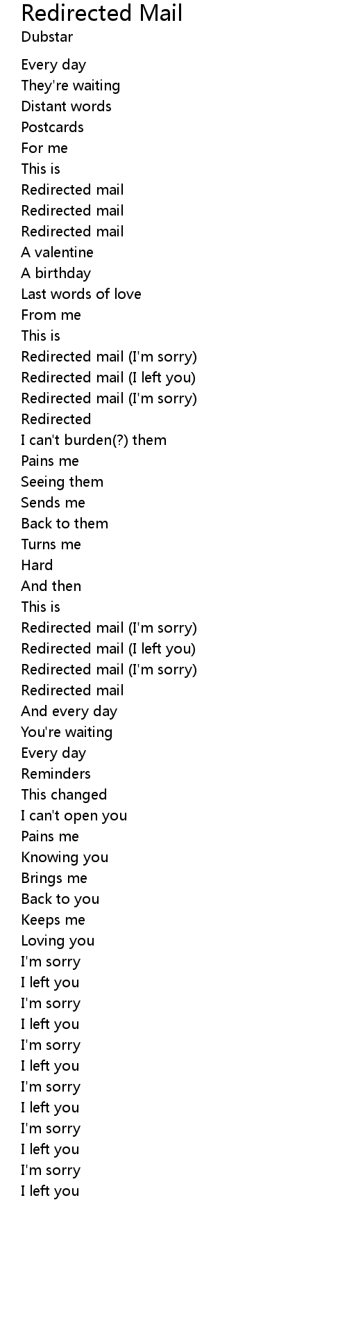 Redirected Mail Lyrics