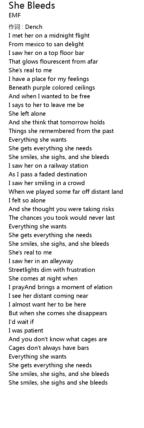 | She smiles, she sighs and she bleeds |