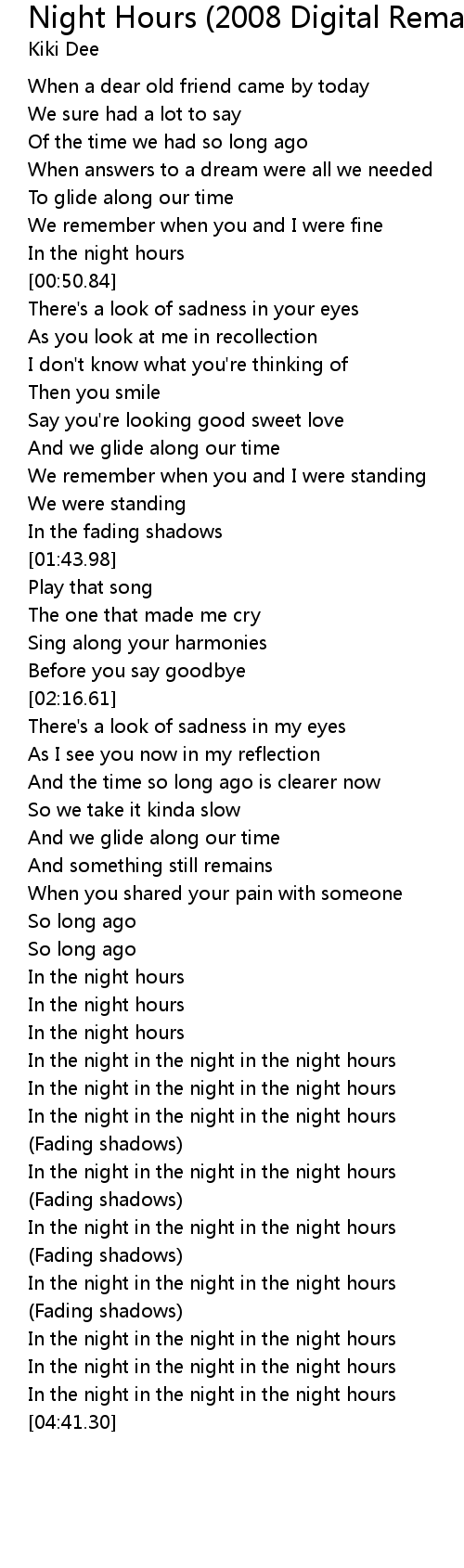 | [04:20.44] | In the night in the night in the night hours |
