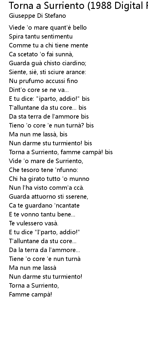 | Song | Torna a Surriento (1988 Digital Remaster) |