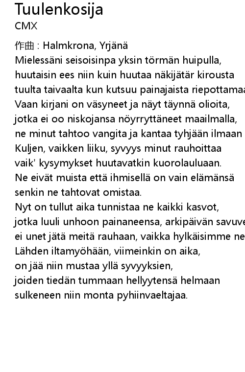 | 作曲 : Halmkrona, Yrjänä | |
