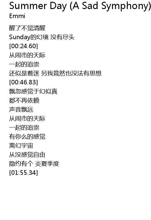 | [00:20.15] | Sunday的幻境 没有尽头 |