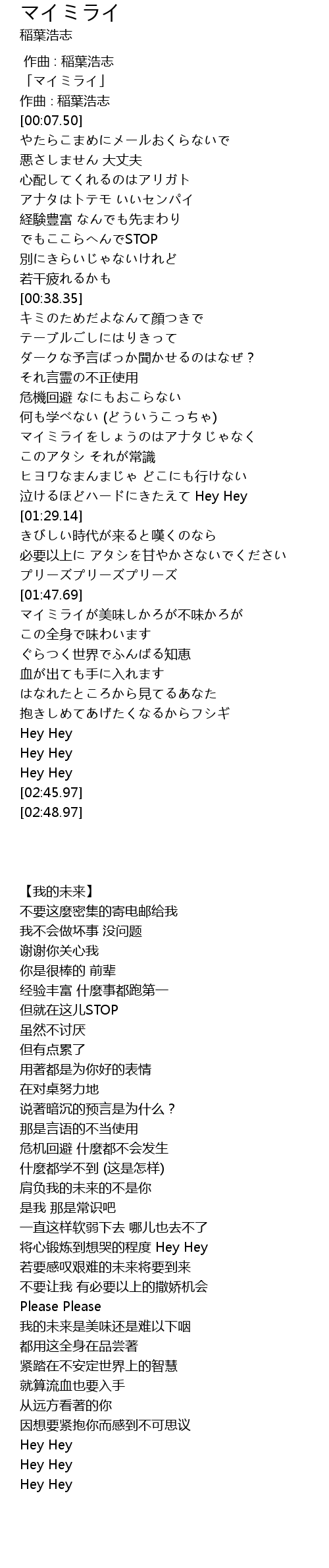| [02:10.10] | マイミライが美味しかろが不味かろが |