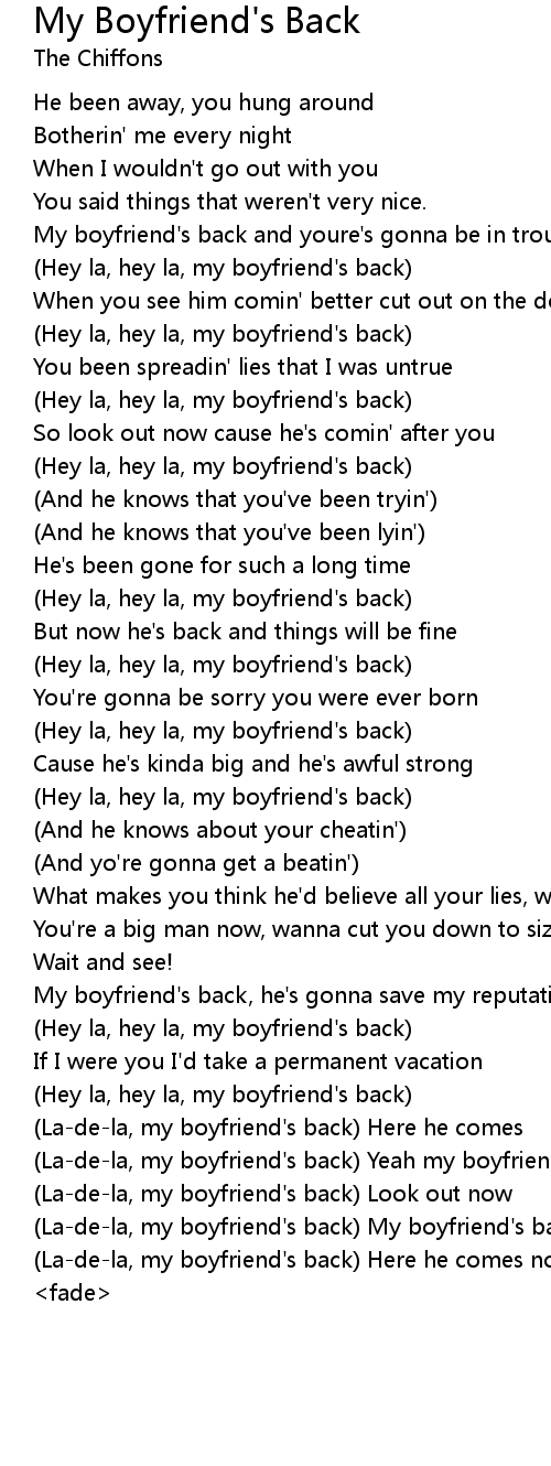 (La-de-la, my boyfriend's back) My boyfriend's back |