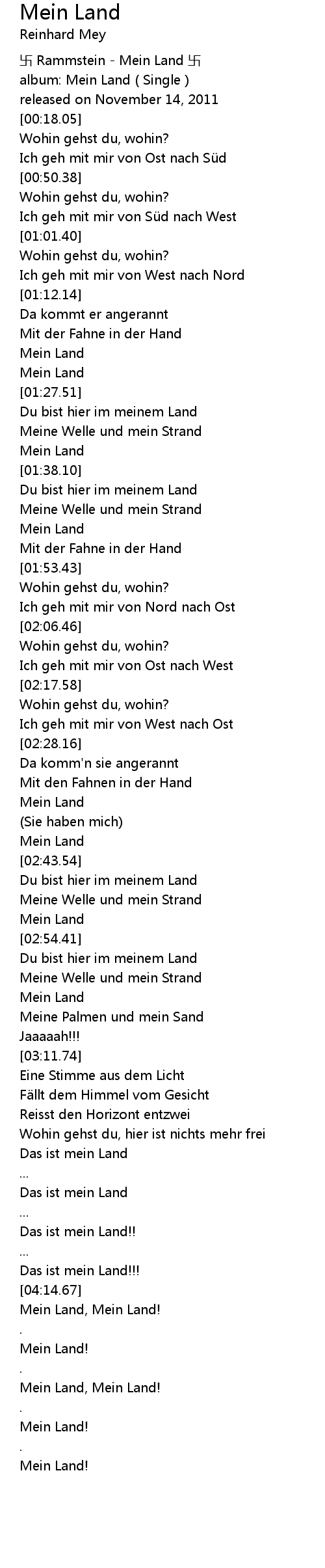 | [00:09.72] | wan Rammstein Mein Land wan |