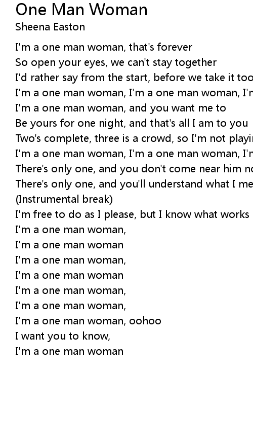 I'm a one man woman, I'm a one man woman, I'm a one man woman, oohoo |