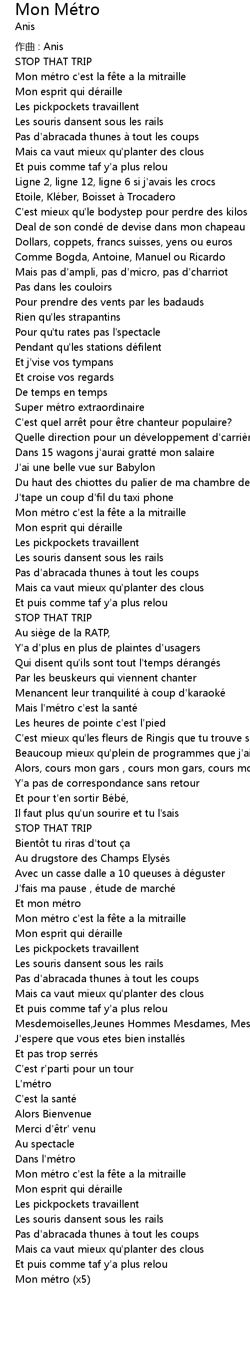 | Song | Mon Métro |