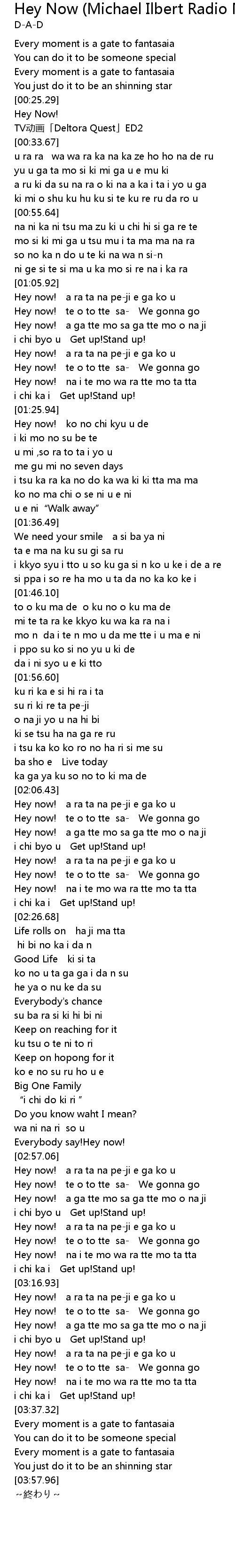 | [03:19.68] | Hey now! te o to tte sa We gonna go |