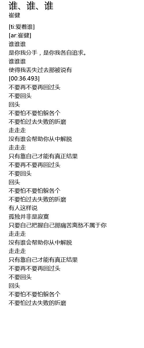| [00:36.646] | bu yao zai bu yao zai hui guo tou |
