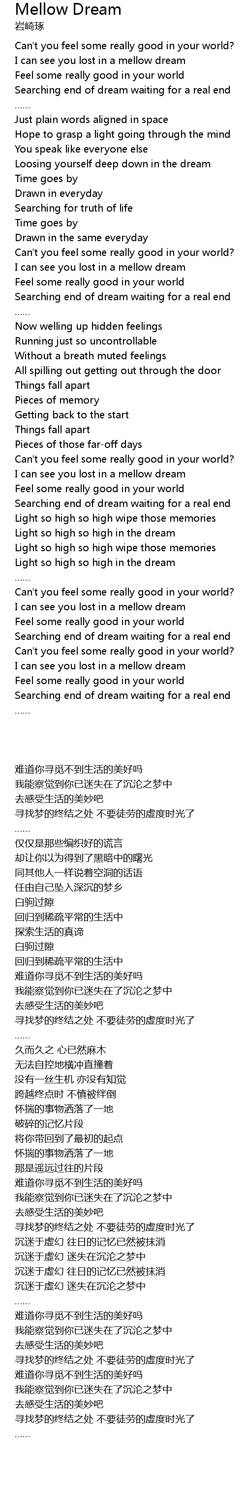 | [00:15.41] | Can' t you feel some really good in your world? |