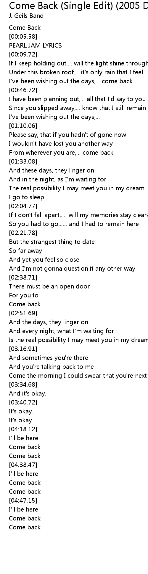 Come Back (Single Edit) (2005 Digital Remaster) Lyrics